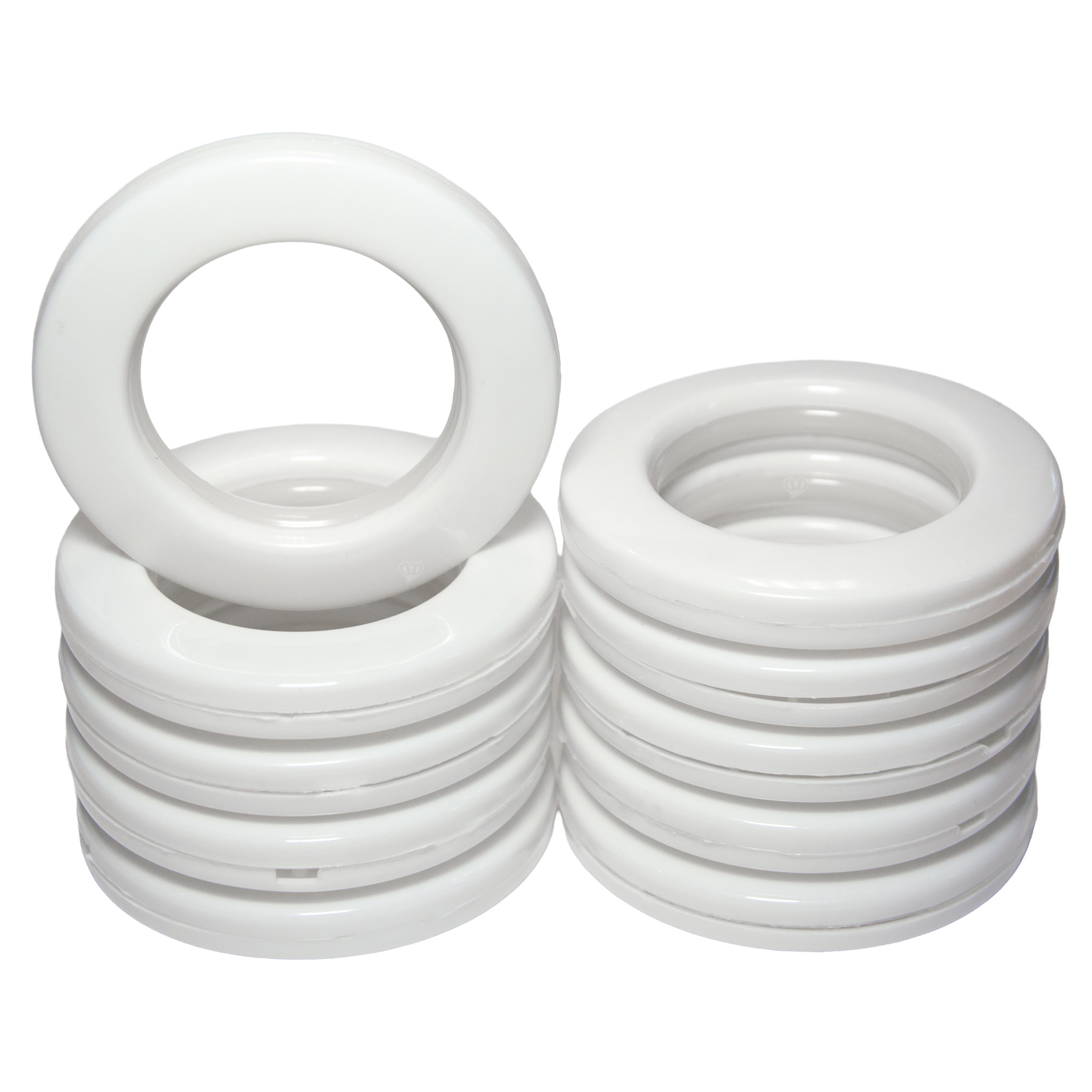 Die Gardinenringe bestehen aus Kunststoff, der besonders robust und langlebig ist. Im Vergleich zu Metall oder Holz sind sie korrosionsbeständig, unempfindlich gegenüber Feuchtigkeit und behalten ihre Form auch bei häufigem Gebrauch. Einmal montiert, lassen sie sich leicht über die Gardinenstange schieben.