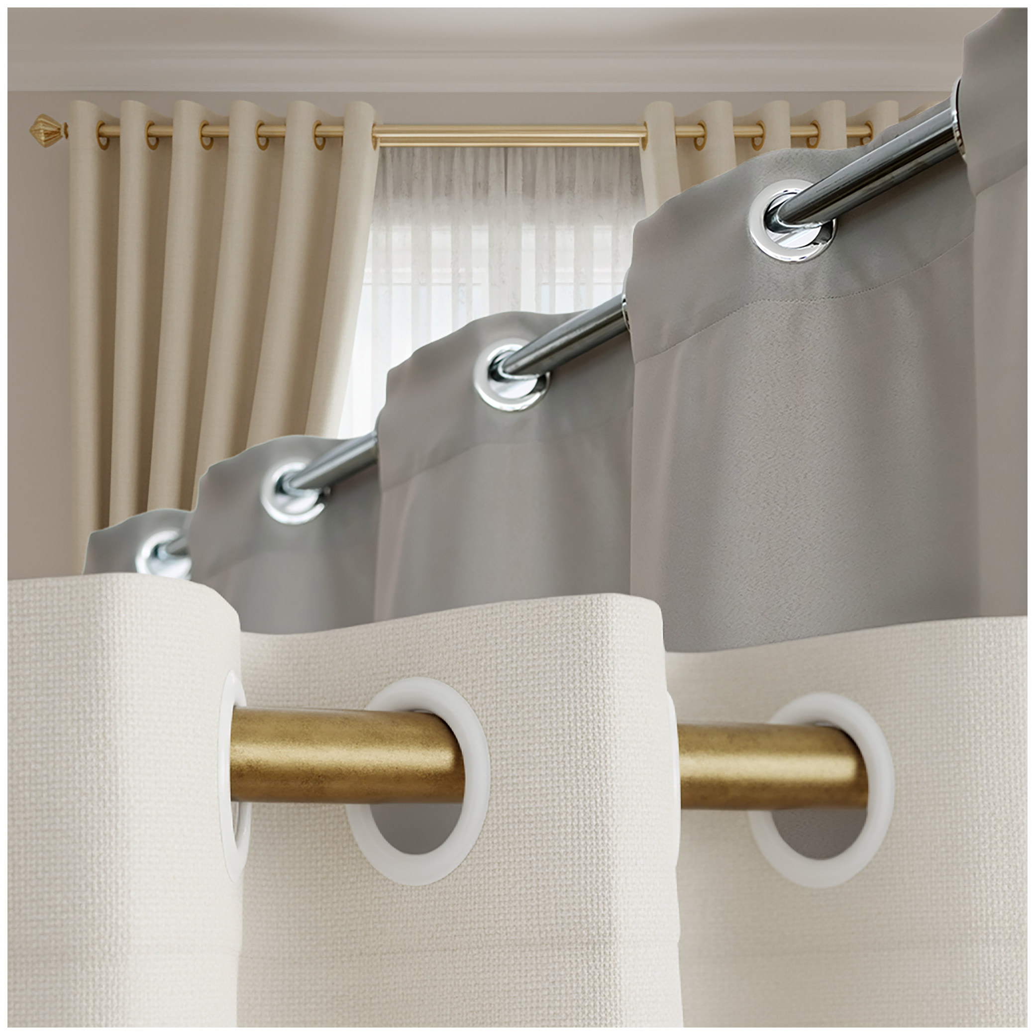 • Der innere Kunststoffring reduziert die Reibung an der Gardinenstange, sodass Vorhänge sanft und geräuscharm verschoben werden können.