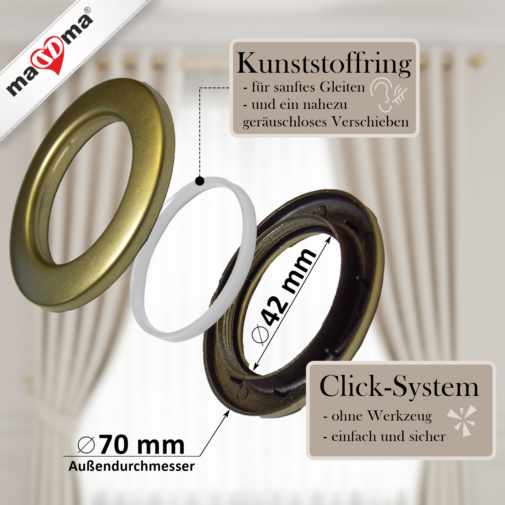 Gardinen-Öse Gardinenring 10 Stück Ø 42 mm Clicköse Ösenring Stofföse für Gardine